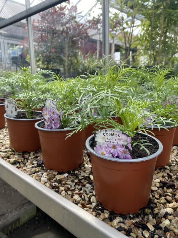 Cosmos are sun-loving plants with a long flowering season. They fill borders with a profusion of flowers, ranging in colour from white through to pink, red and orange, in contrast with masses of feathery foliage. Shorter varieties also look good in containers and all cosmos make fantastic cut flowers. Cosmos prefer dry, arid soil rather than wet conditions.