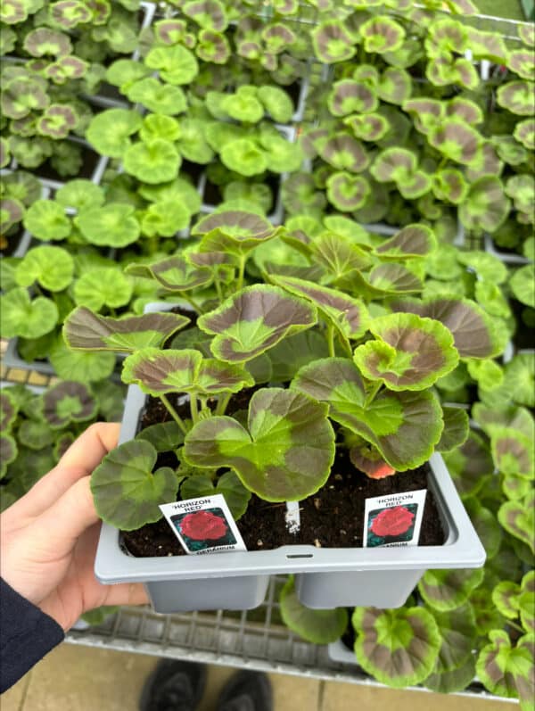 A 4 pack of bedding geraniums.