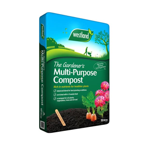 Westland Gardener’s Multi-Purpose Compost is produced from premium grade Irish blended peat which has been milled and graded to produce a quality growing media and blended with the correct nutrient and trace element balance to ensure healthy plants, vibrant flowers and quality fruit. Perfect for plants, vegetables, trees and shrubs. Enriched with nutrients to last 4-5 weeks.