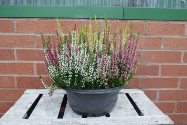 Heathers are low-growing, hardy evergreen perennial shrubs which thrive in acidic soils in open sunny locations or partial shade. They are the dominant plants in most heathlands and moorlands with different varieties having flower colours ranging from white, through to pink, a wide range of purples and reds.